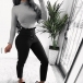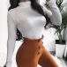 It comes with a solid color,with high waist and a fit silhouette,this pants can showcase your sldenr figure.