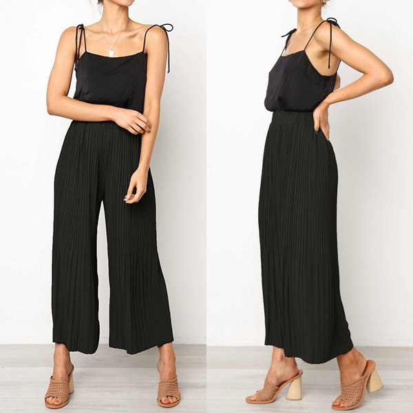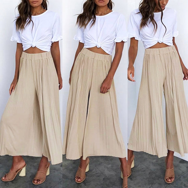and wide-leg silhouette design can showcase your slender figure. The pleated design will make it