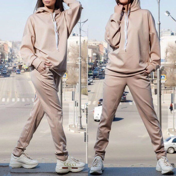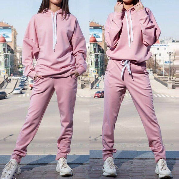 long sleeve hooded and a sports pants,this sports suit can offer you a comfortable day with its soft