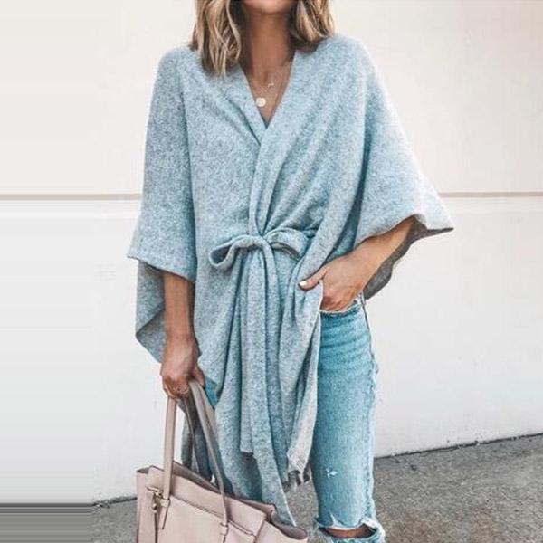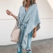Fashion Solid Color Irregular Hem Lace-up Wind Coat