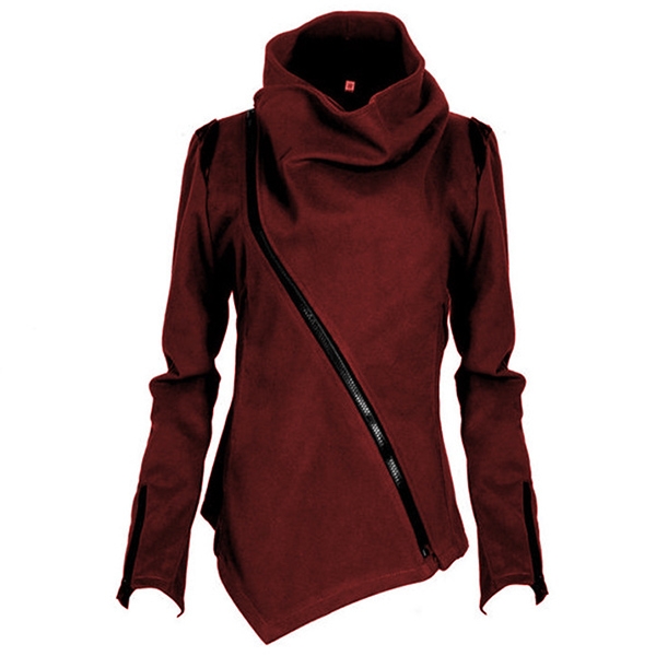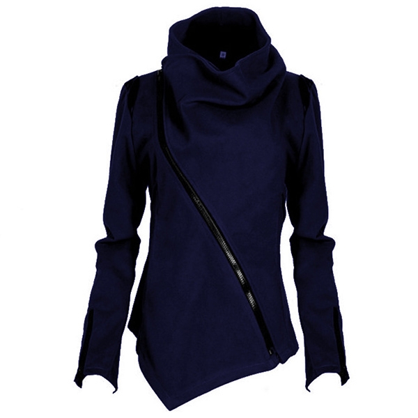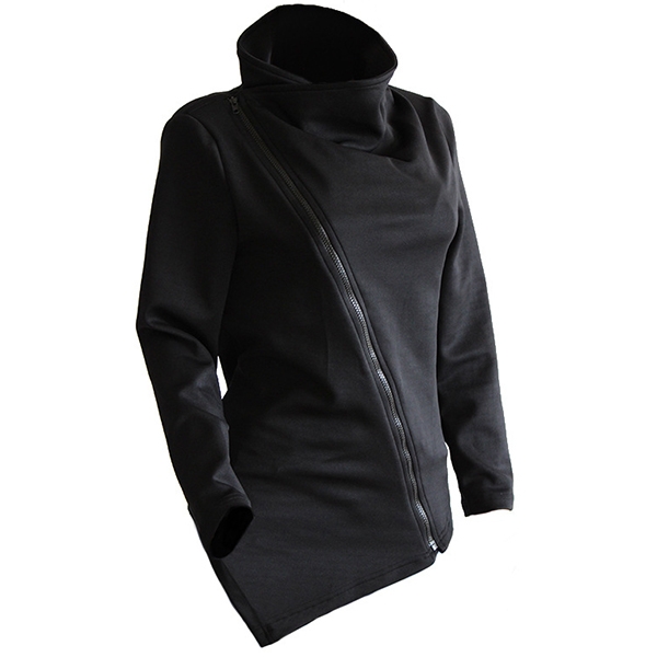 Fashion Solid Color Irregular Hem Obliaue Zipper Coat