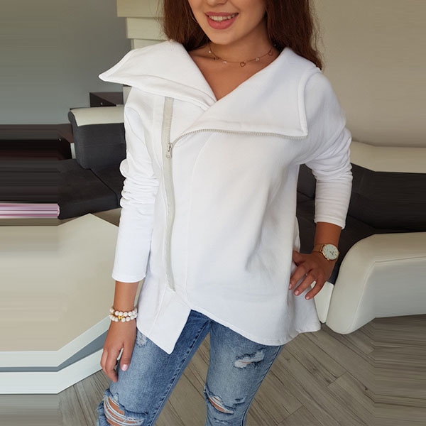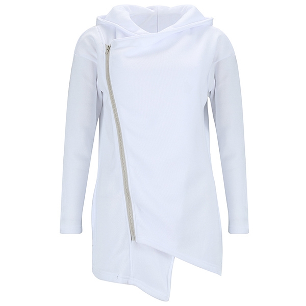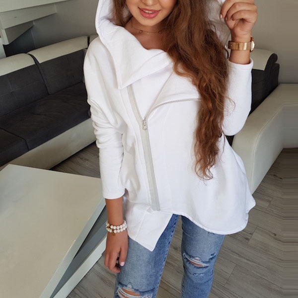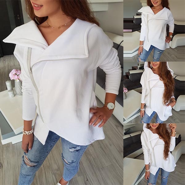 sweatshirt coat. Solid color style,the oblique zipper and irregular hem design are the highlights,