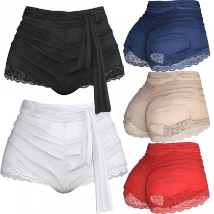 solid color,the lace spliced hem and waist strap design enrich its design style as well as enhance
