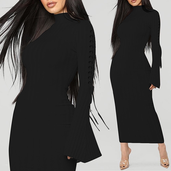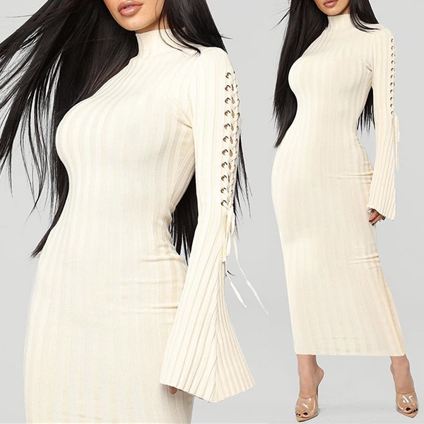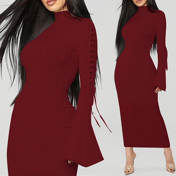 For the spring and autumn,this dress would strike your mind. Bears a solid color,the trumpet sleeve with