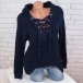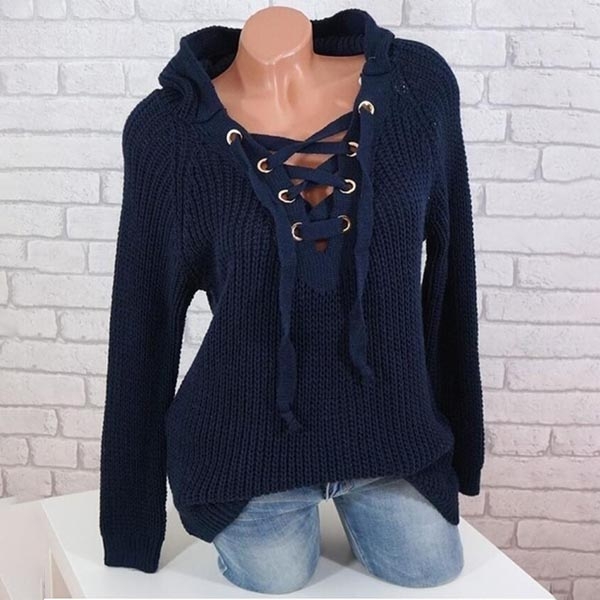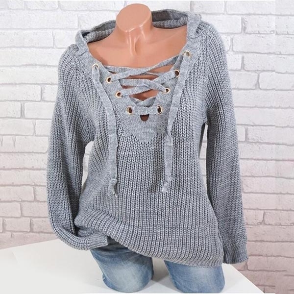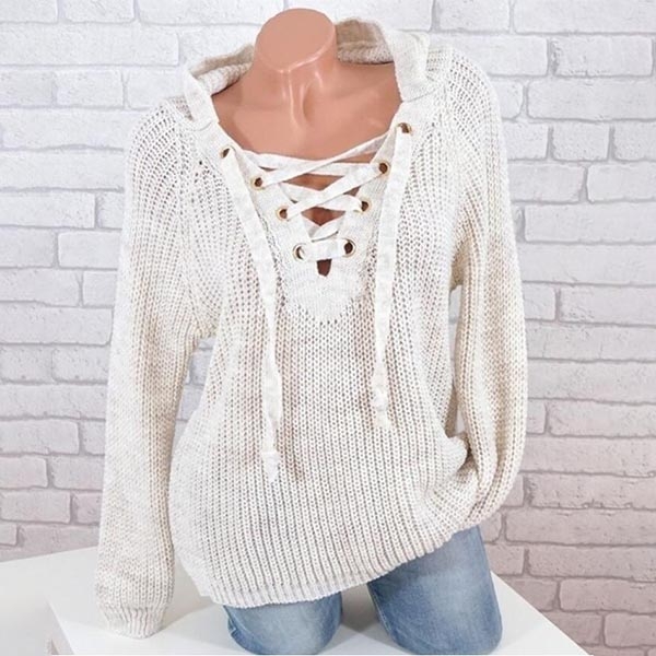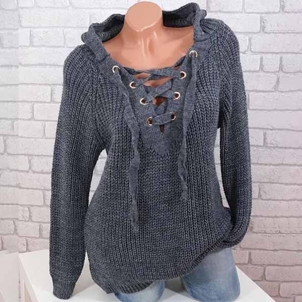 the lace-up v-neck and hooded silhouette design break the simple and classic design style.