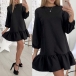 Comes with a solid color,the lantern sleeve and ruffle hem design are the highlights,which make this piece look
