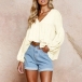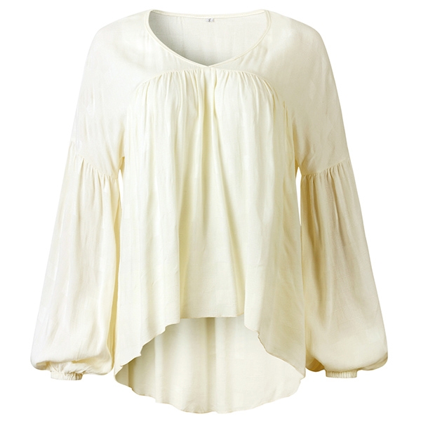 Solid color style,the lantern sleeve,v-neck and high-low hem design make this piece look so