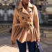 Fashion Solid Color Lapel Collar Double-breasted Pleated Hemline Coat