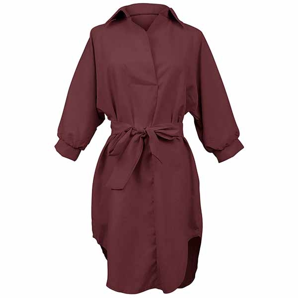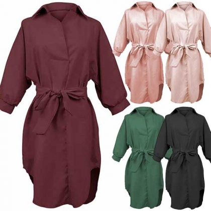 This dress comes with a classic yet stylish pure color tone,finished with long sleeve,lapel collar and slim
