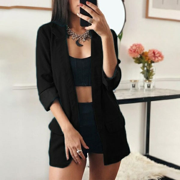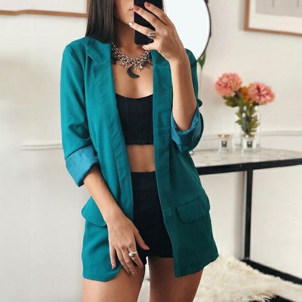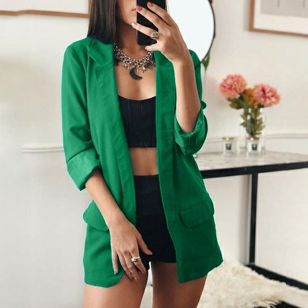 Fashion Solid Color Lapel Long Sleeve Suit Coats