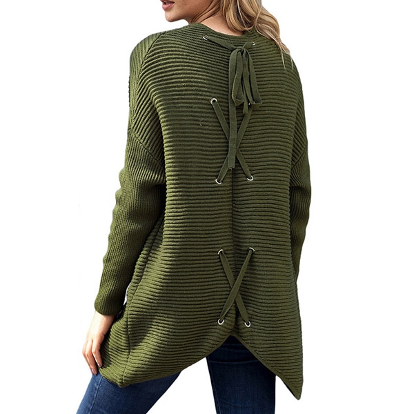 Boasts a solid color,the irregular hem and lace-up design at back side make this piece look so