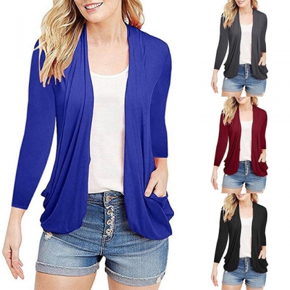 Comes with a solid color,simple yet generous. Finished with long sleeve,a loose silhouette and front hand