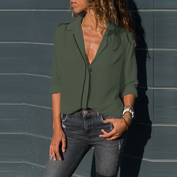 Fashion Solid Color Long Sleeve Chiffon Blouse
