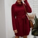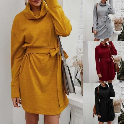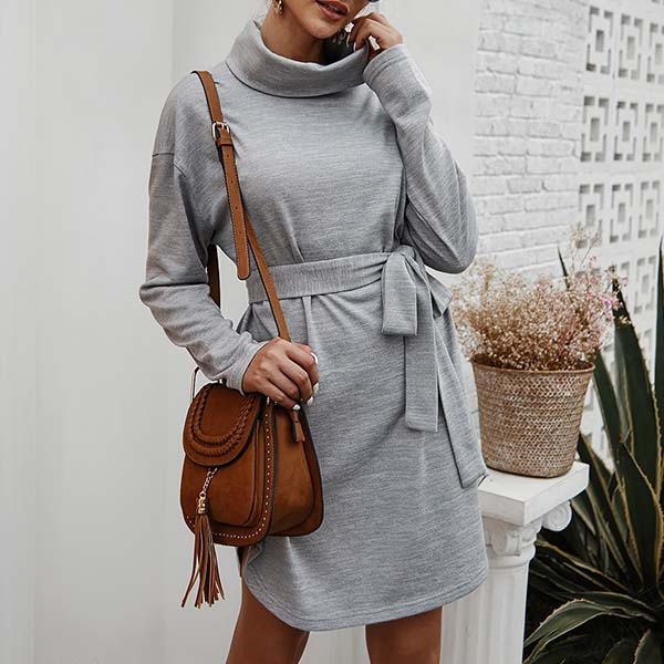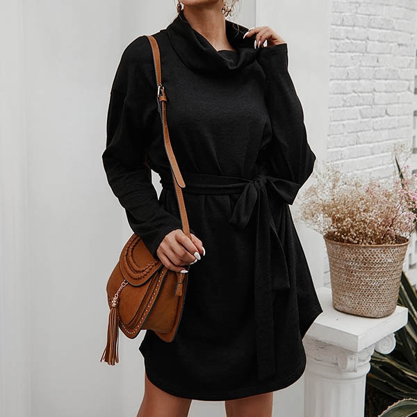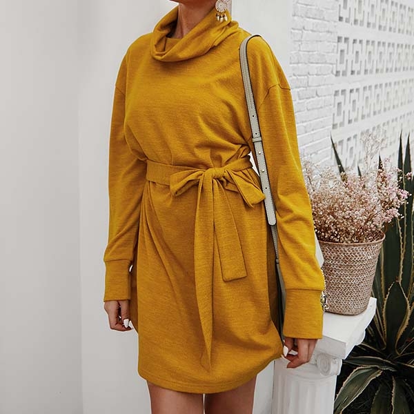 Solid color tone design makes it look simple yet generous. The cowl neck and waist strap