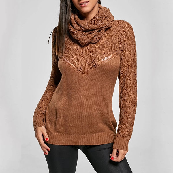 This knit top comes with a solid color,the hollow out knit spliced design can add its charm,while