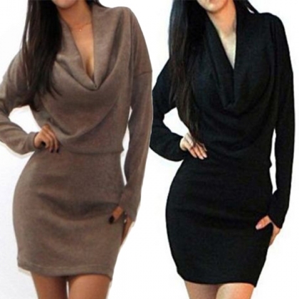 the fit silhouette design can display your slender figure,while the cowl neck design is the design