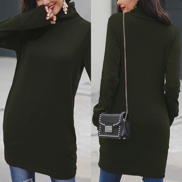 easy-to-wear sweatshirt dress. It comes with a solid color,finished with long sleeve,cowl neck and