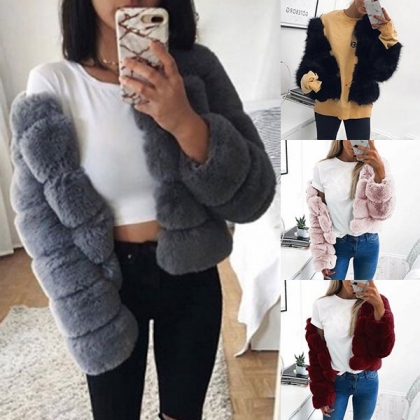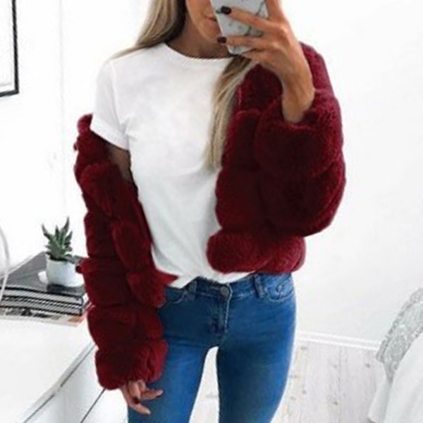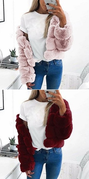 Håll dig varm i den här fuskpälsrocken. Den kommer med en enfärgad,
