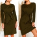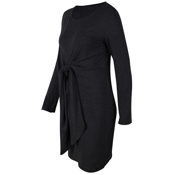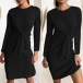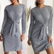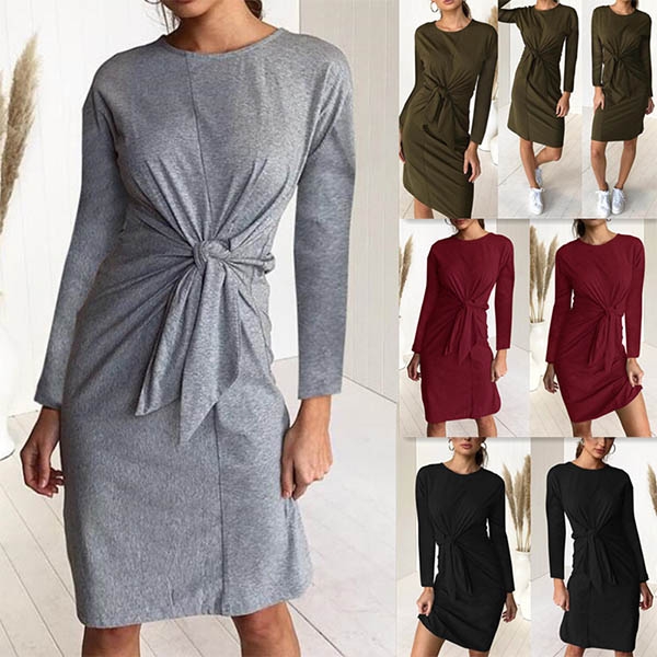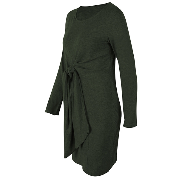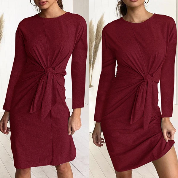 a solid color,with long sleeve,round neck and a fit silhouette,simple yet stylish,while the front-knotted