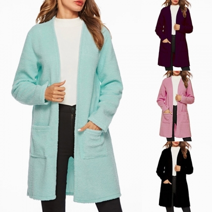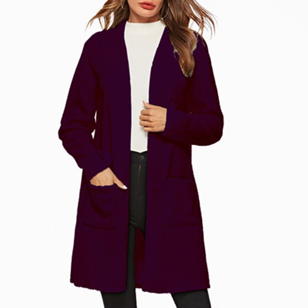Slip into this cardigan to greet the cold days. It comes with a solid color,simple yet generous.