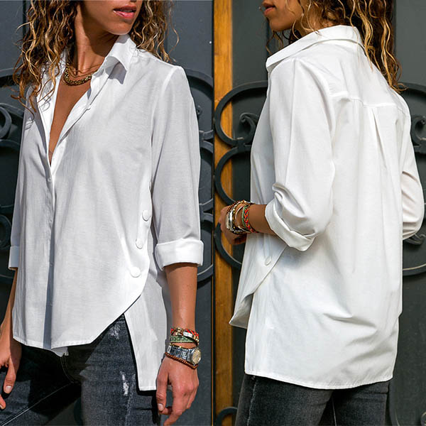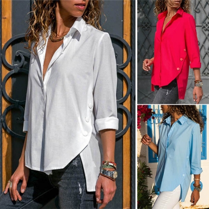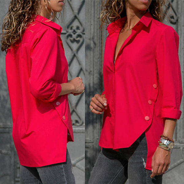 Comes with a solid color,the high-low hem and side buttons design make this piece look so