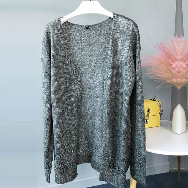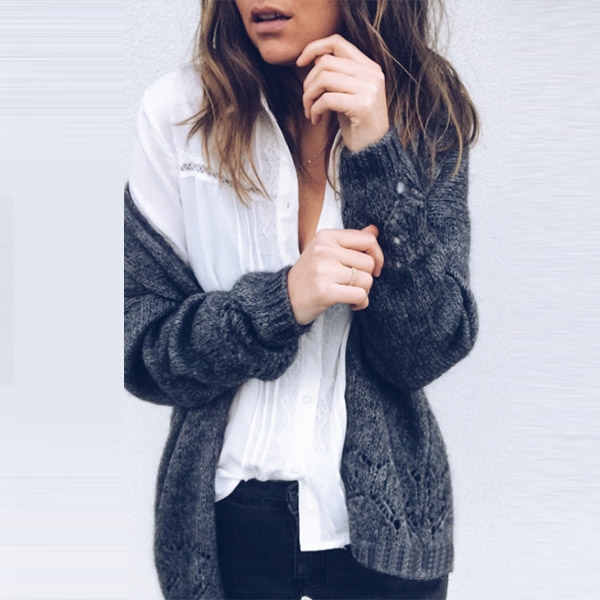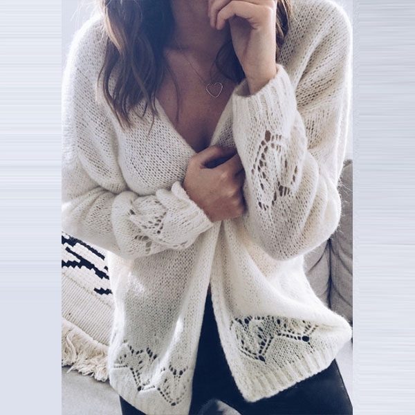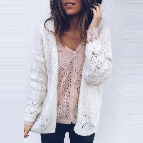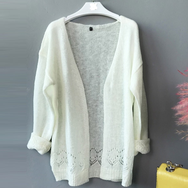 Fashion Solid Color Long Sleeve Hollow Out Knit Cardigan