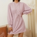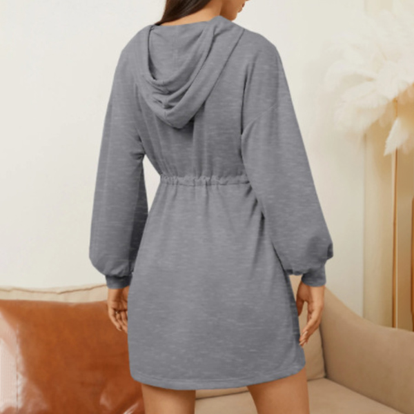 Fashion Solid Color Long Sleeve Hooded Dress(Without belt)