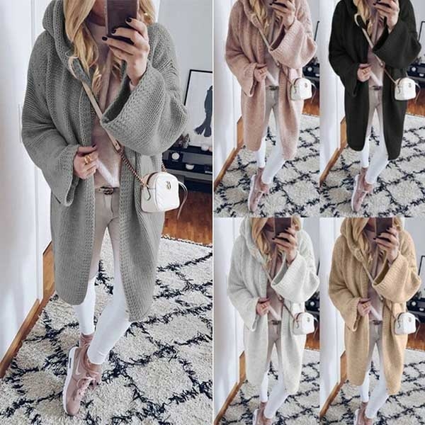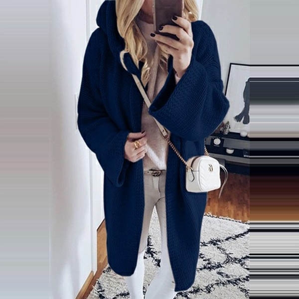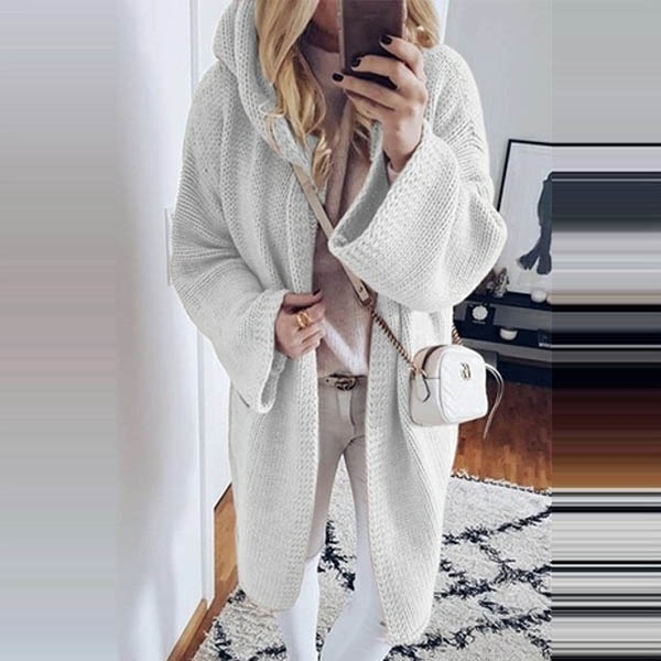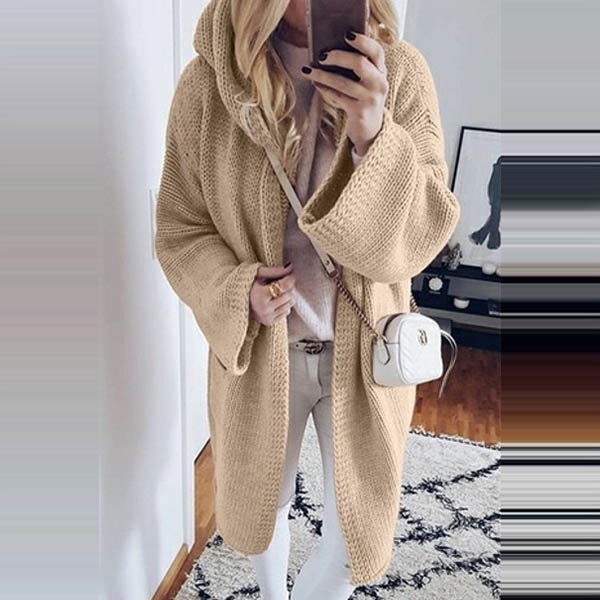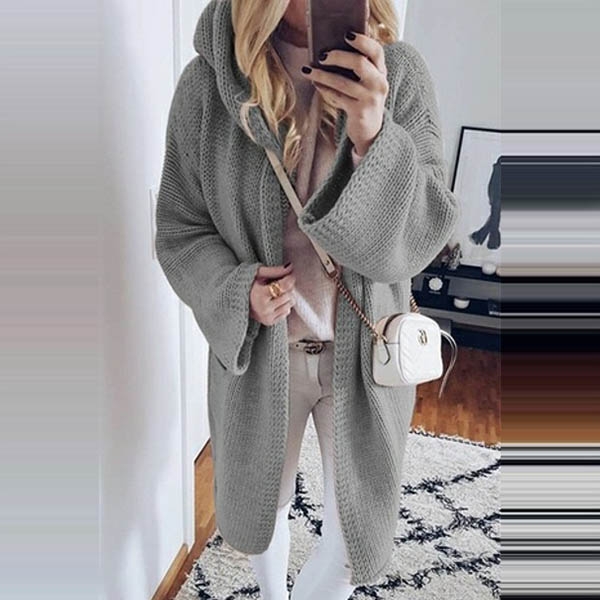 Fashion Solid Color Long Sleeve Hooded Knit Cardigan