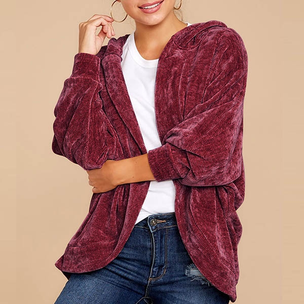 This cardigan comes with a solid color,simple yet stylish. It is finished with long sleeve,hooded