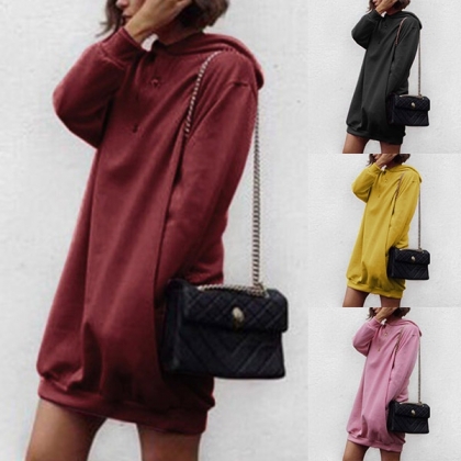 comfortable day. Finished with long sleeve,hooded and front pocket design,this sweatshirt dress will