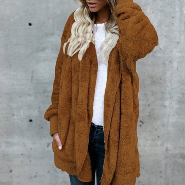 When it comes to the chilly season,this plush coat can be your good choice. It is styled with solid color,