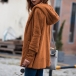 Finished with long sleeve,hooded silhouette and hand pockets design,this plush coat can offer you a fashionable winter look by teaming