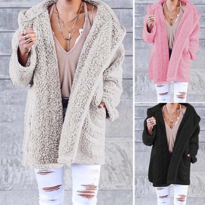 This plush coat would be your wise choice in these cold days. It comes with a solid color,finished with