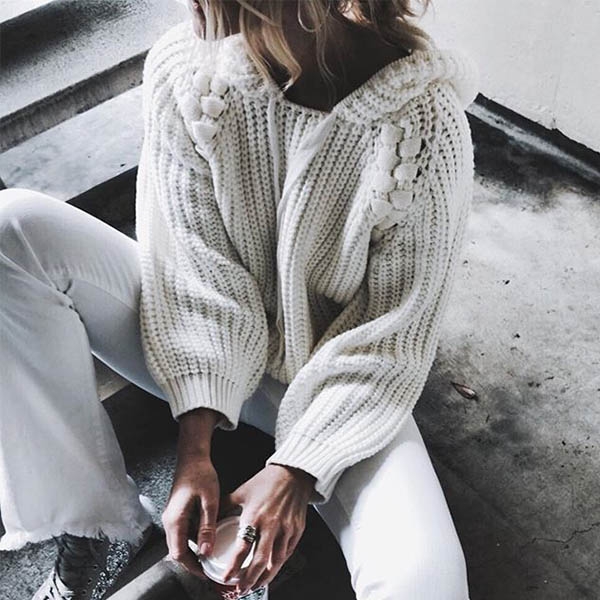 Make your winter wardrobe more complete by adding this sweater. Comes with a stylish white tone,