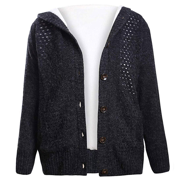 Designed with a solid color,long sleeve,hooded silhouette and front buttons details,this sweater coat
