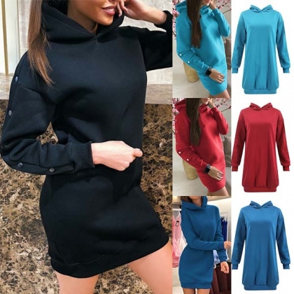 When the autumn season hits,you can just slip into this long sleeve sweatshirt dress. It boasts a solid color,