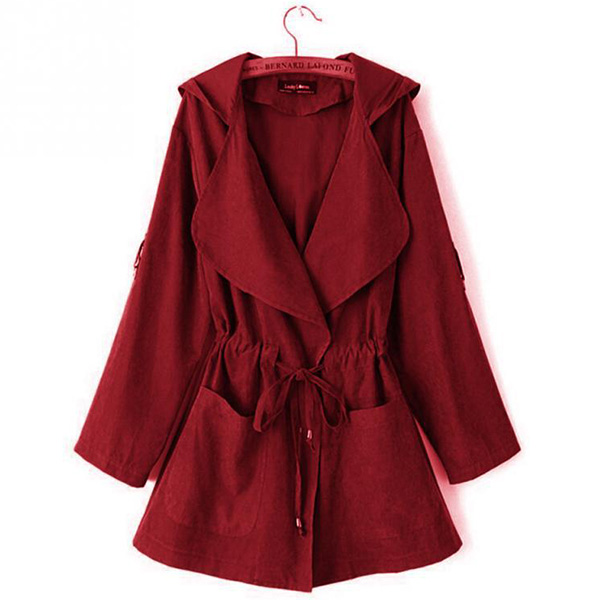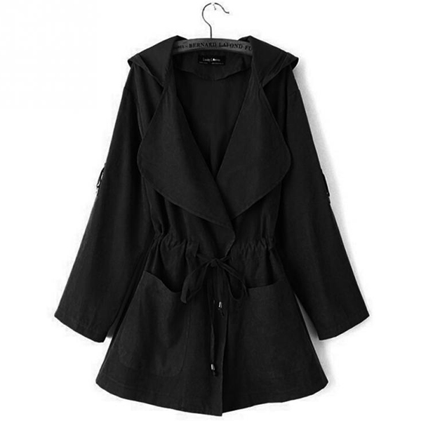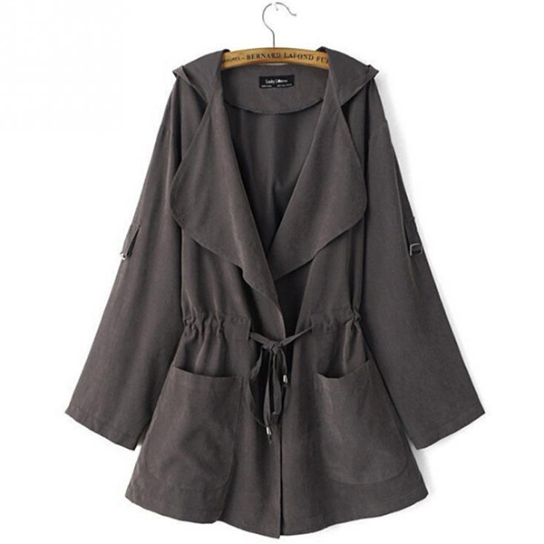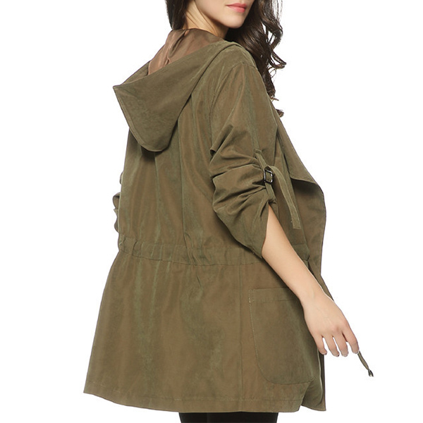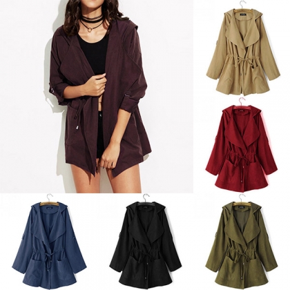 Fashion Solid Color Long Sleeve Hooded Windbreaker Coat