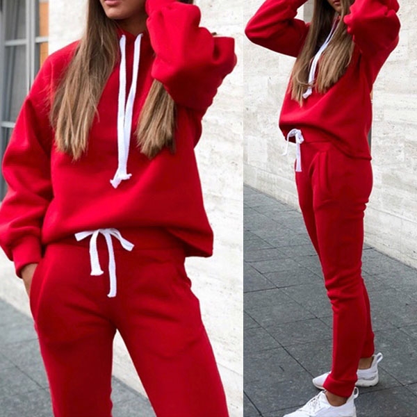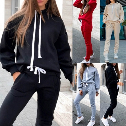 Solid color style,including a long sleeve loose hoodie and a sports pants,simple,cozy yet stylish.
