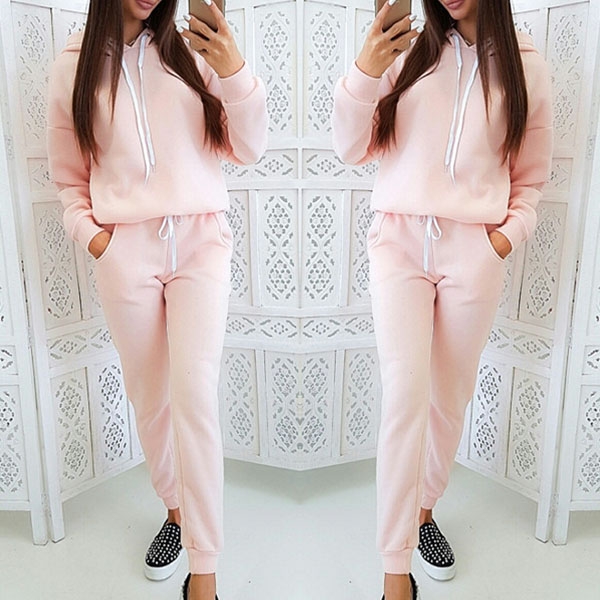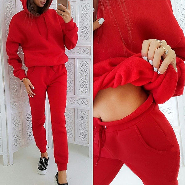 Solid color style,simple yet stylish. Including a long sleeve hoodie and a pants,its soft and breathable fabric