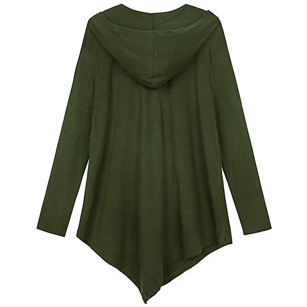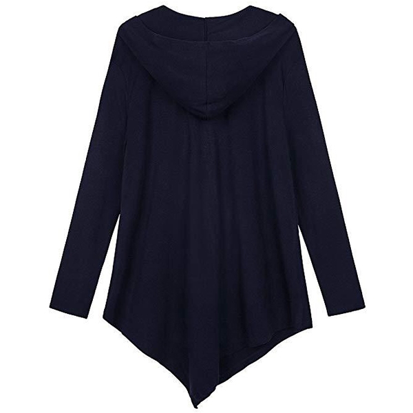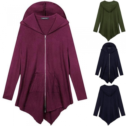 Fashion Solid Color Long Sleeve Irregular Hem Hooded Sweatshirt Coat