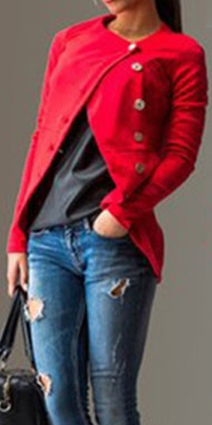 outfitted with long sleeve,irregular hem and oblique buttons design,unique and stylish. You