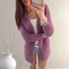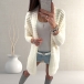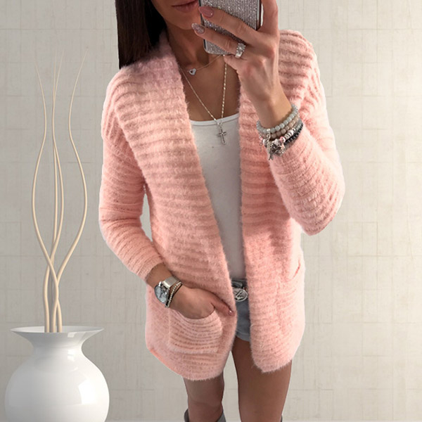 You can keep cozy and warm while still maintaining your style in this knit cardigan. Comes with a solid color,