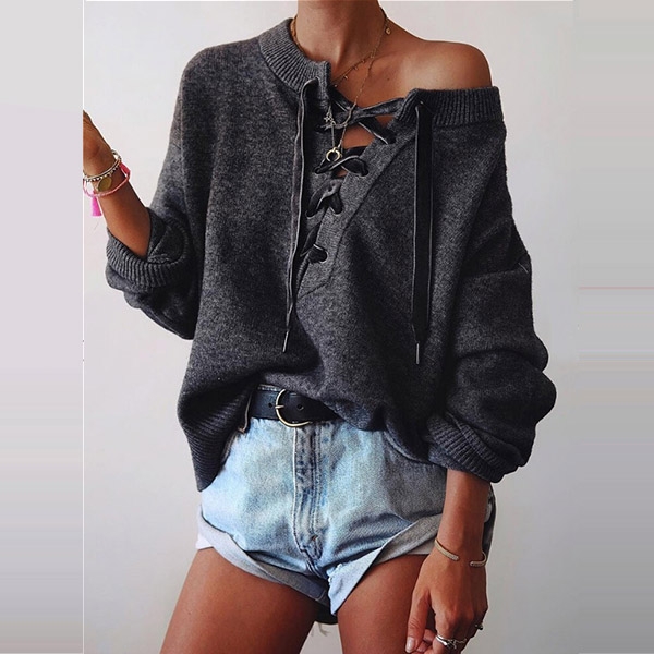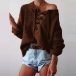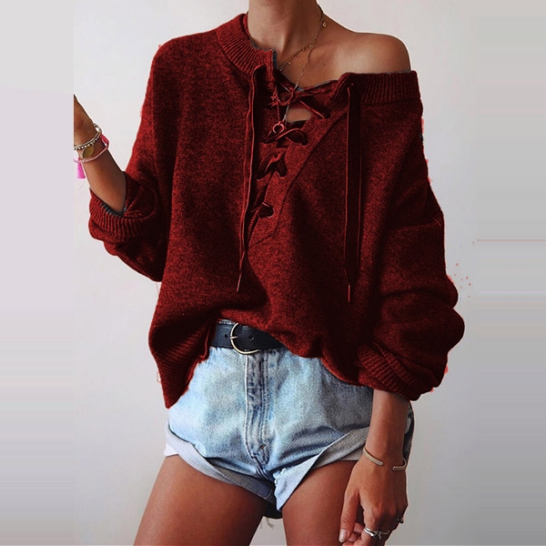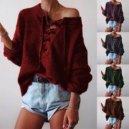 Greet the autumn season with this sweater. Solid color style,the lace-up v-neck design can lend you a dash