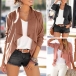 Solid color style,the lapel design makes this piece look so chic and unique.