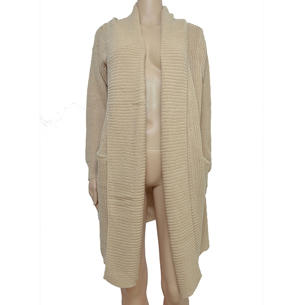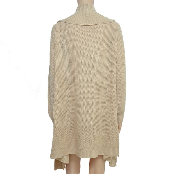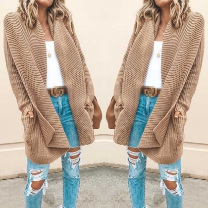 Boasts a solid color,with long sleeve,unique lapel and a loose silhouette,this knit cardigan