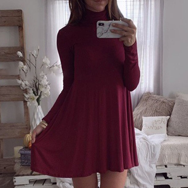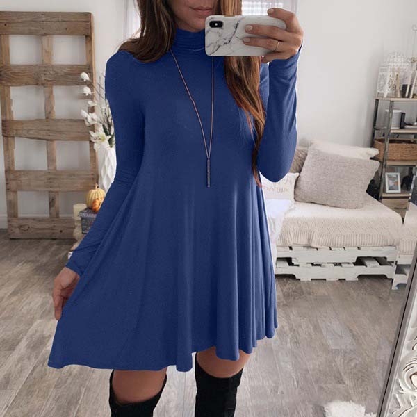 Fashion Solid Color Long Sleeve Mock Neck Dress