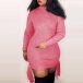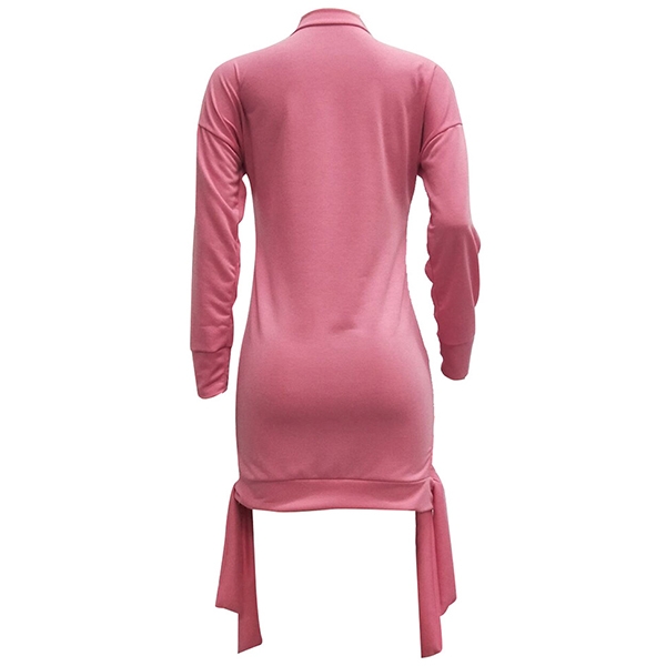 mock neck and a fit silhouette,this dress can demonstrate your slender figure. And the knotted hem design
