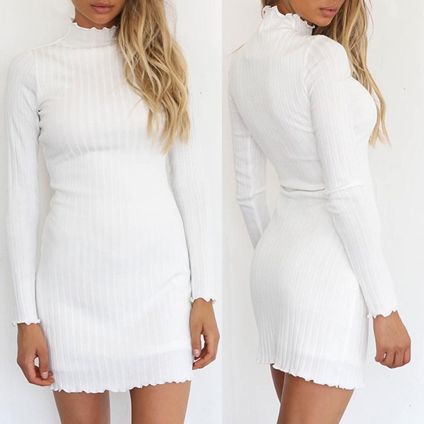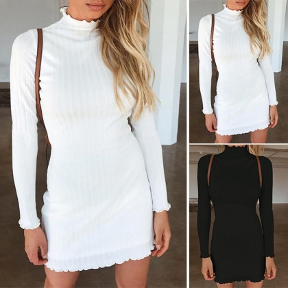 Update your wardrobe ensemble by adding this knit dress. It comes with a solid color,finished with long sleeve,