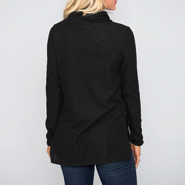 oblique collar and high-low hem design make this piece look so chic and distinctive. Try to match with