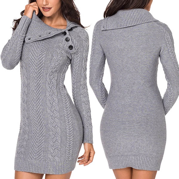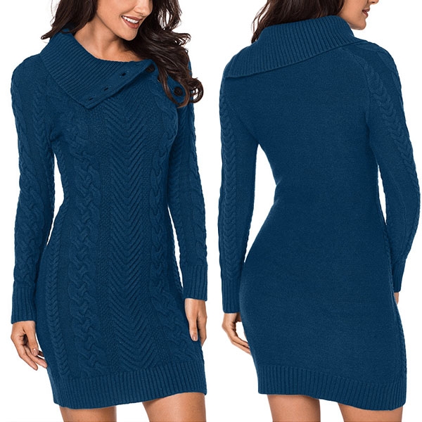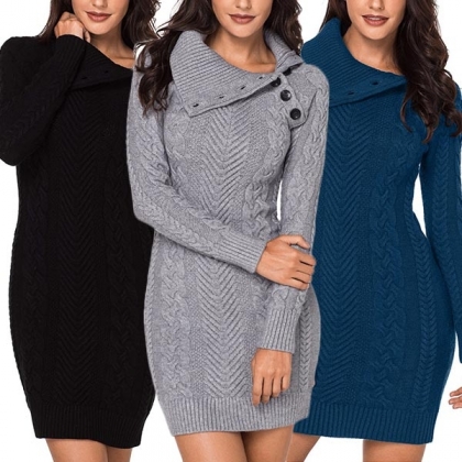 This sweater dress would be your wardrobe staple in these cold days. Solid color style,the oblique